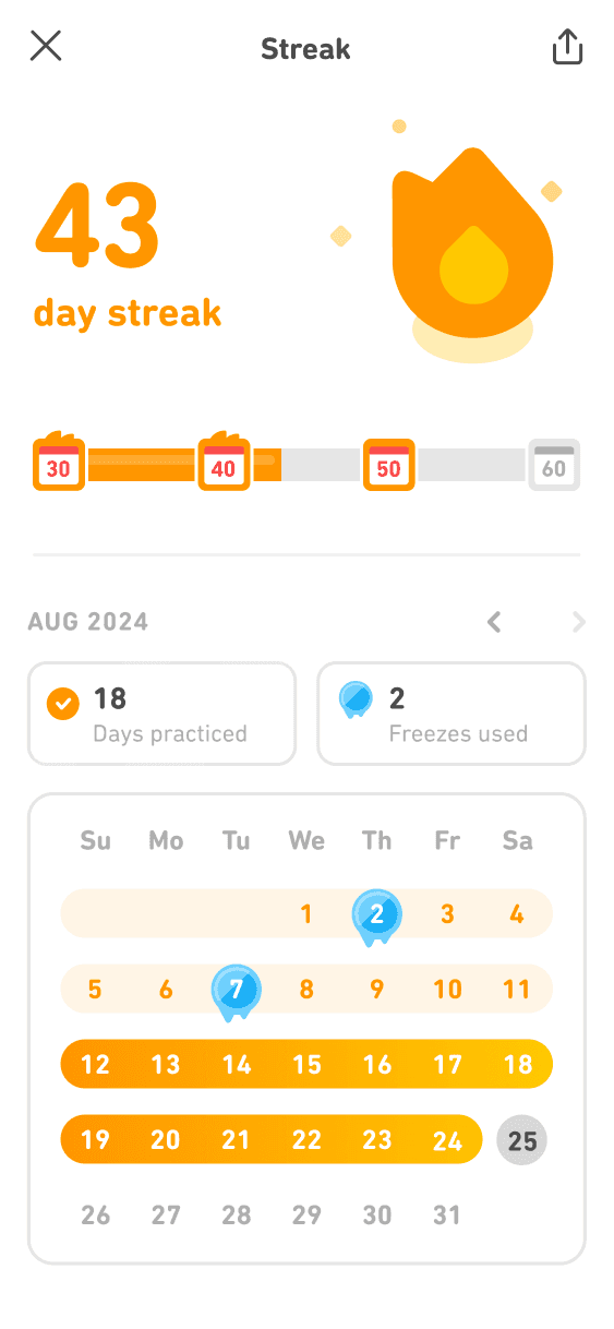Users with long streaks often lose motivation after reaching an initial milestone. Once the excitement of “keeping the streak alive” fades, the product needs a new reason for users to continue practicing consistently.