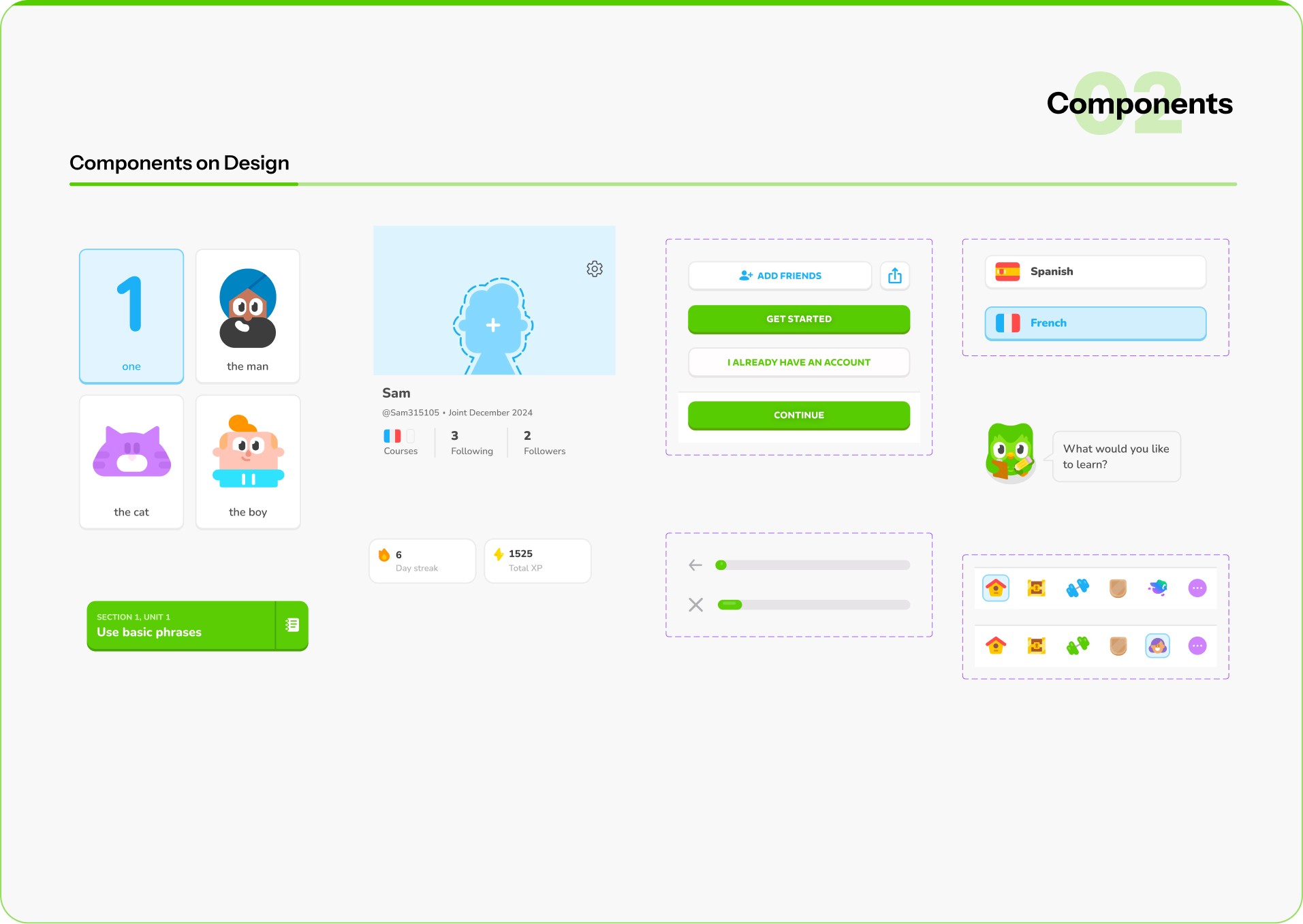 By adapting the existing system and adding subtle extensions, the new design stayed true to Duolingo’s personality while delivering a fresh, faster experience.
